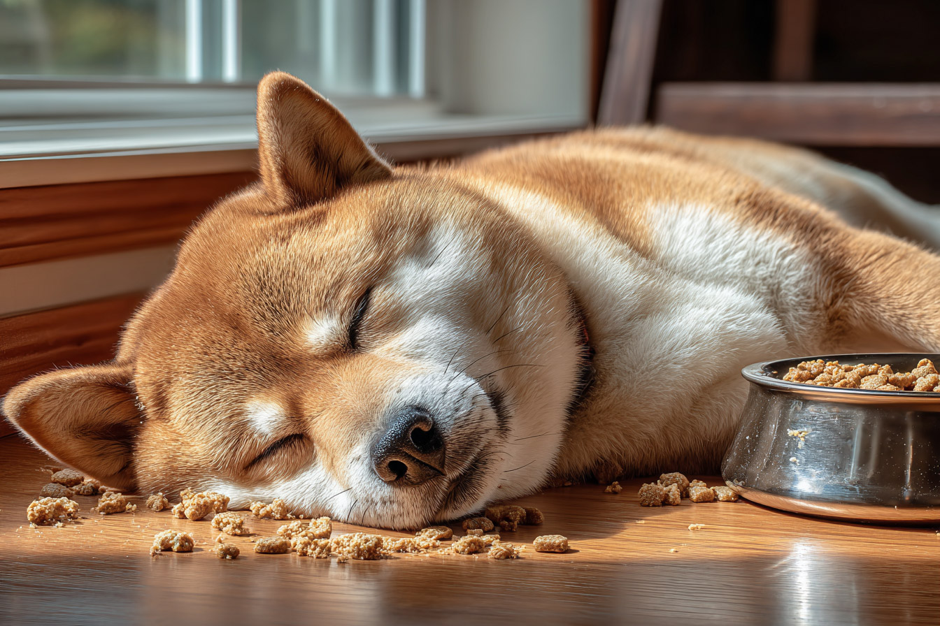 Как помочь собаке перестать есть лежа